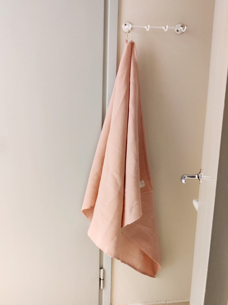 Iso kylpypyyhe on valmistettu Suomessa ekologisesta ja kestävästä hamppukankaasta. Ihoa vasten lempeän tuntuinen kangas kuivuu nopeasti.